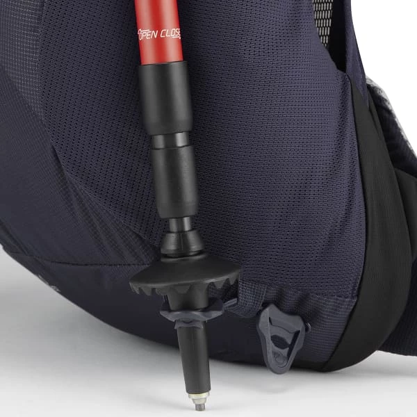D’autres fonctionnalités complètent son efficacité : deux attaches pour bâton de marche TipGripper, des tendeurs supérieurs, une sangle de poitrine avec sifflet, une housse de pluie, un clip pour clés… sans oublier qu’il est compatible avec les systèmes d’hydratation.